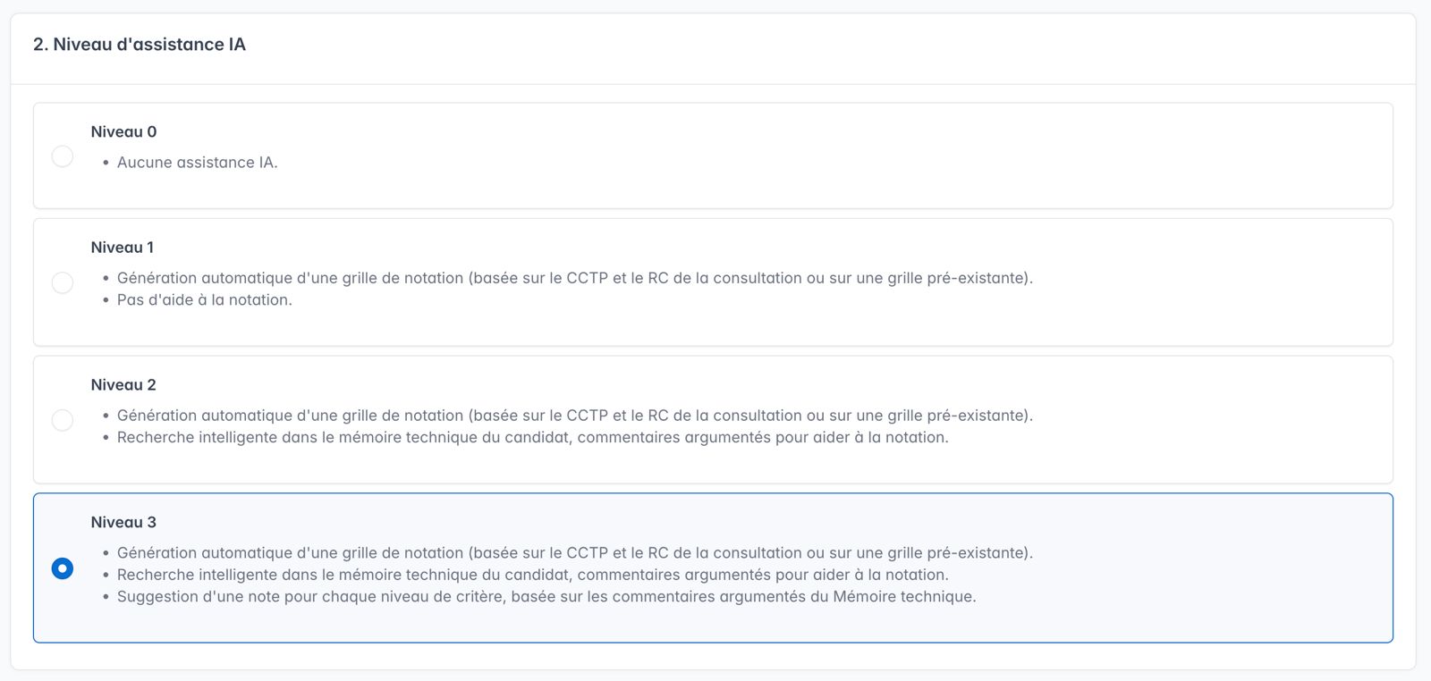 2 - Définition de différents niveaux d'assistance de l'IA à proposer à l'utilisateur